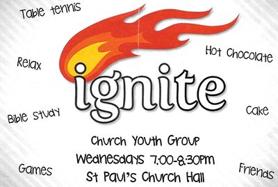 Ignite is the Church Youth Group for young people aged 11- 18yrs old. It is a joint venture with St Paul's Church, Church Road, Clacton on Sea, CO15 6AU and is held each Wednesday evening from 7.00 - 8.30pm at St Paul's Church Hall next to the Church. There is time to relax, have fun, make friends and play games as well as Bible Study. Refreshments are also available. For more information contact Hannah Ward via email: gtclactonparish@gmail.com